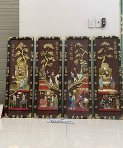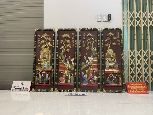 xin giới thiệu tới quý khách hàng Bộ Tranh Tứ Qúy Tích Truyện Kiều Sơn Thiếc Vàng với hoa văn đục chạm nổi bật kết hợp với màu sắc được sơn thiếc vàng rất đẹp và lối đánh phủ bụi giả cổ. Bồ gồm 4 món mỗi bức là một cảnh sắc thái khách nhau. Bộ tranh được cơ sở chúng em làm theo lối cổ rất bắt mắt, ý nghĩa. Dưới đây là hình ảnh và thông tin chi tiết ạ