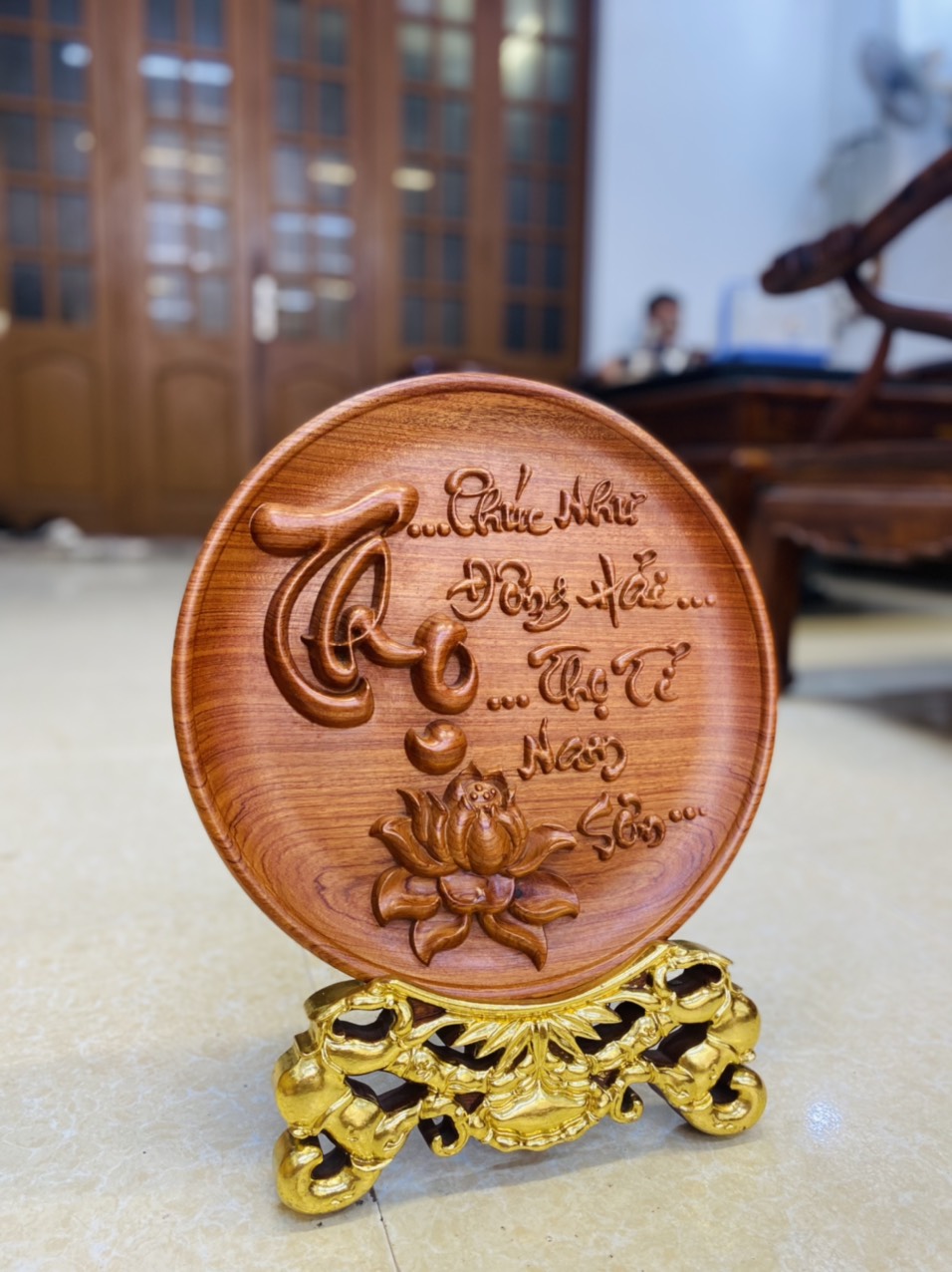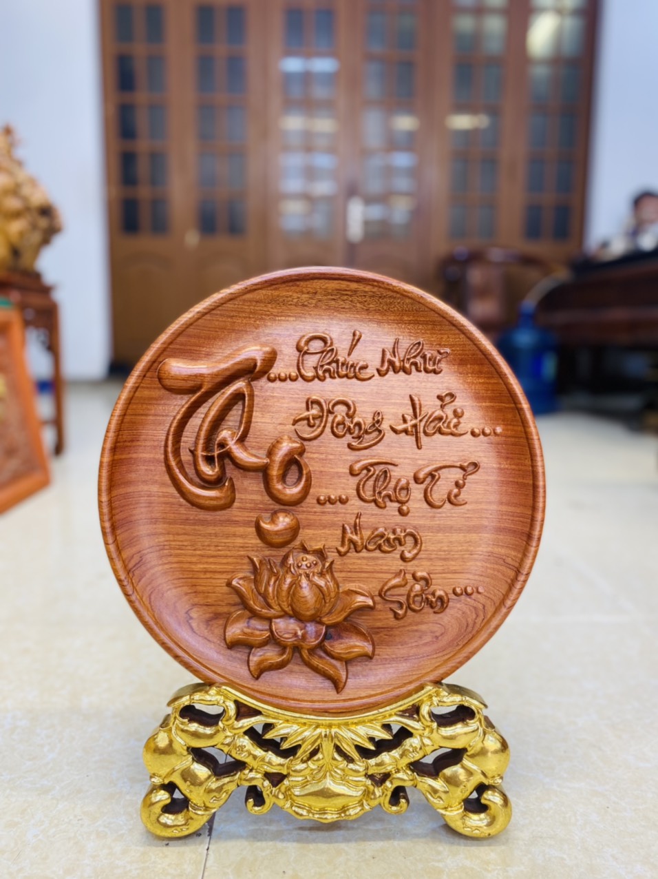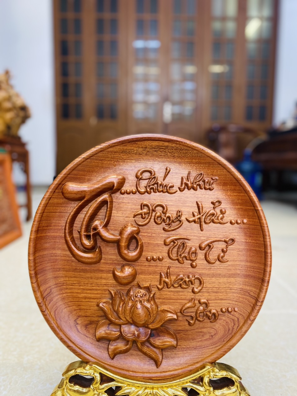 xin giới thiệu tới quý khách hàng mẫu Đĩa Chữ Thọ Gỗ Hương Đá mẫu đĩa để bàn đẹp nổi bật và ý nghĩa. Hình ảnh chữ Phúc được người nghệ nhan thể hiện nổi bật ” Phúc Như Đông Hải Thọ Tỉ Nam Sơn ” và giá kê đĩa sơn son thiếc vàng rất nổi bật, tinh tế