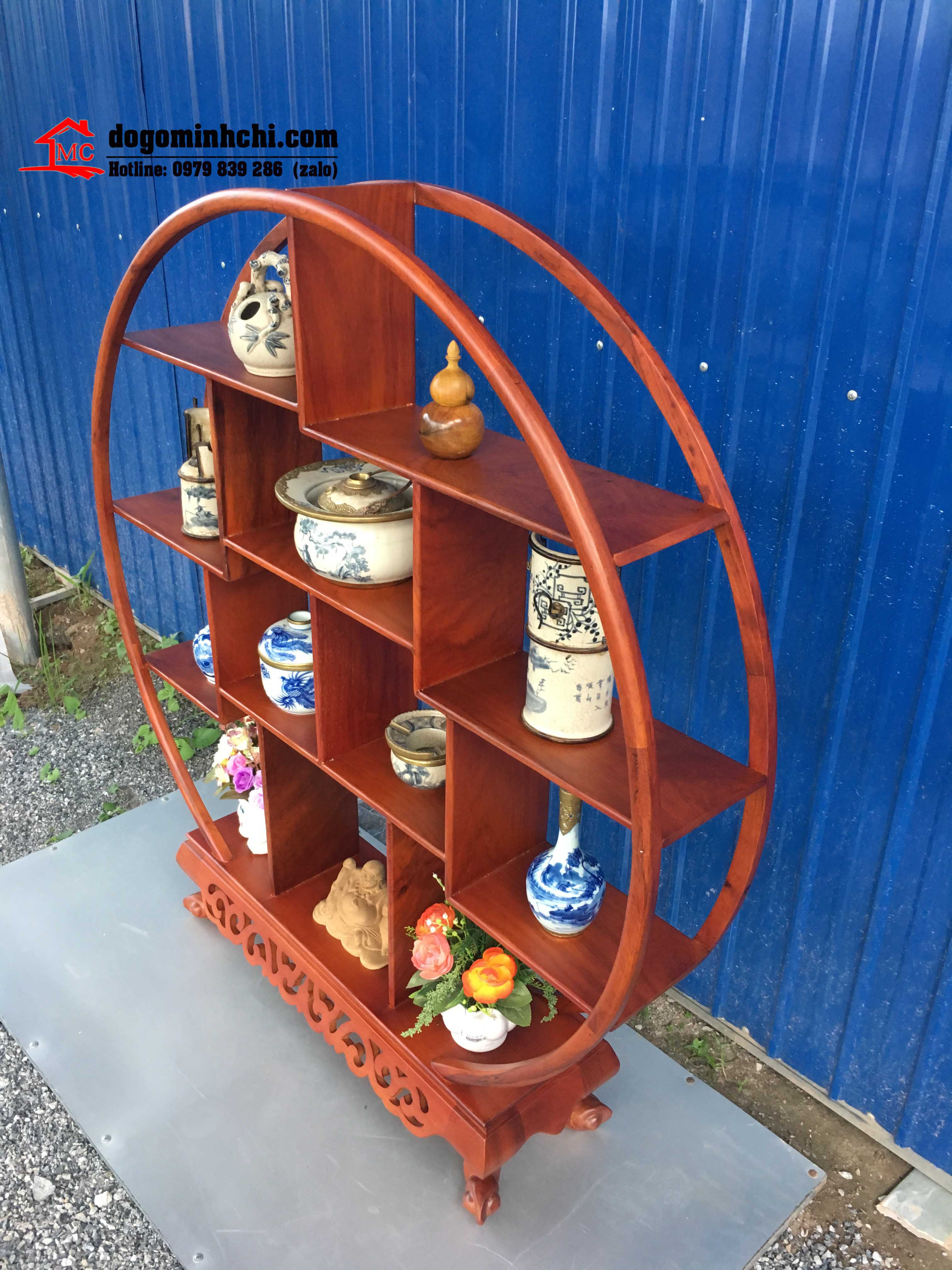Kệ Trưng Bày Đồ Tròn – Bày Đồ Gốm Sứ – Tượng Gỗ. Được thiết kế đơn giản theo nối giả cổ Trung Quốc. Kệ Trưng Bày Đồ Tròn được làm từ chất liệu gỗ Hương. Sản phẩm có các ngăn sàn gỗ được thiết kế hợp lý, trưng bày những đồ vật quý, yêu thích mà bạn sưu tầm như đồ gốm sứ, ly, ấm tượng gỗ chẳng hạn. Thật tuyệt khi có sản phẩm này trong nội thất nhà bạn.