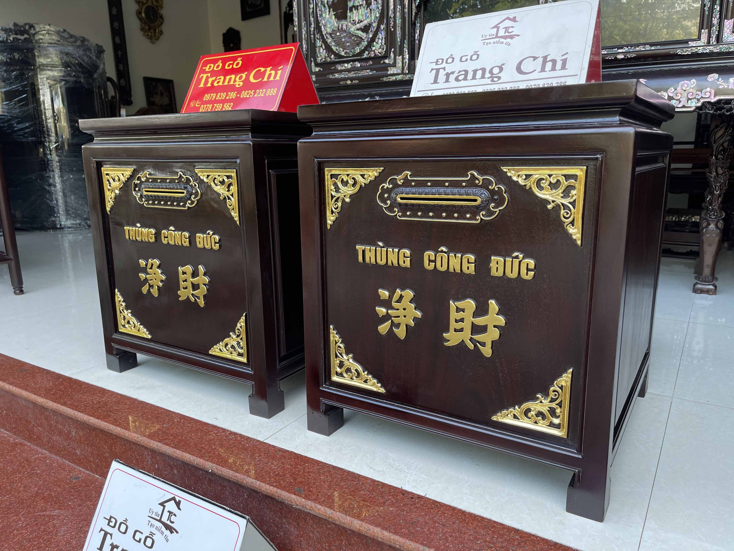 Thông tin : Mẫu Thùng Công Đức Gỗ Gụ Sơn Thiếc