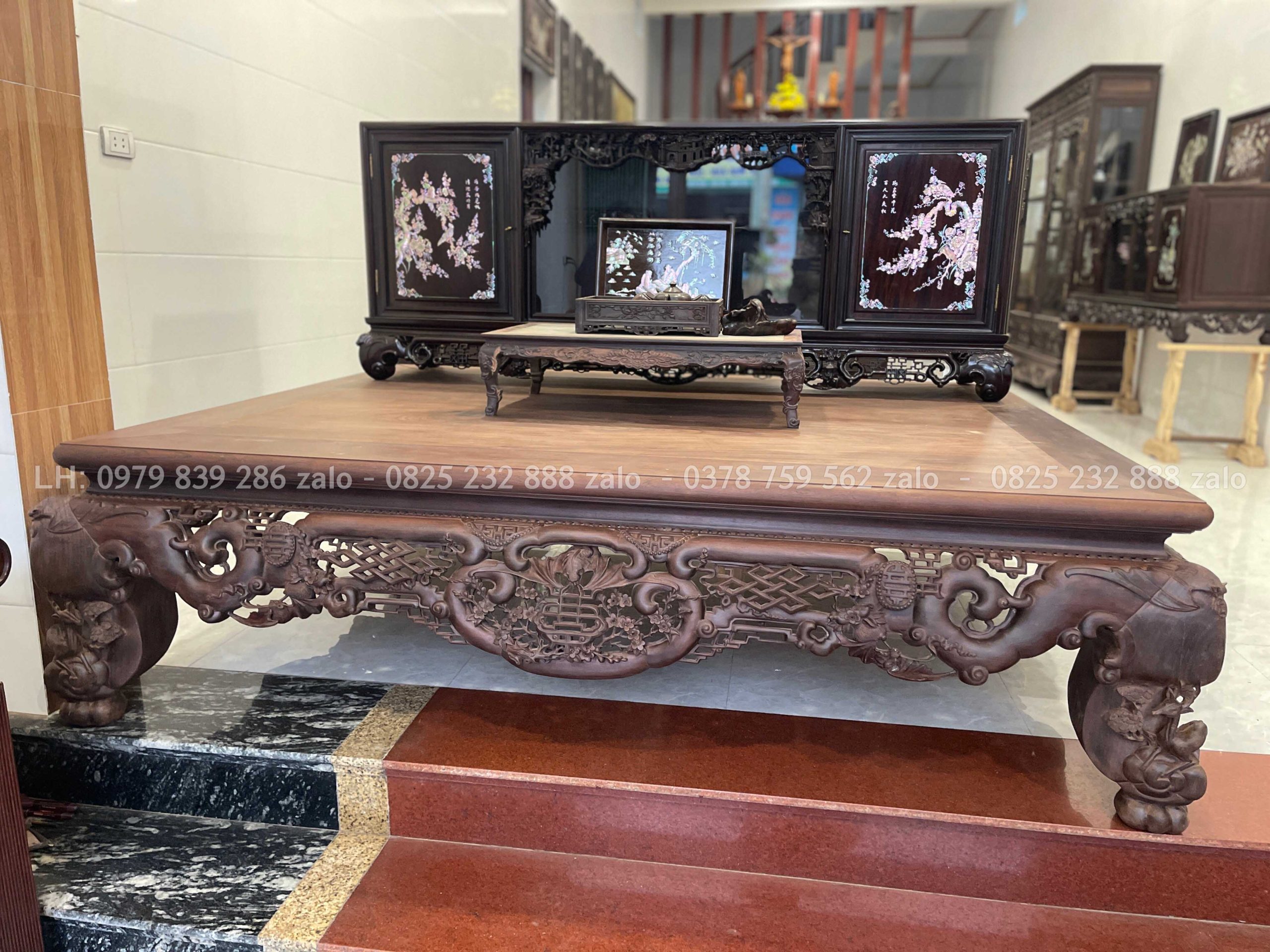 Thông tin : Sập Ngũ Phúc Chân Hươu Gỗ Gụ Đánh Chay Lá Chuối