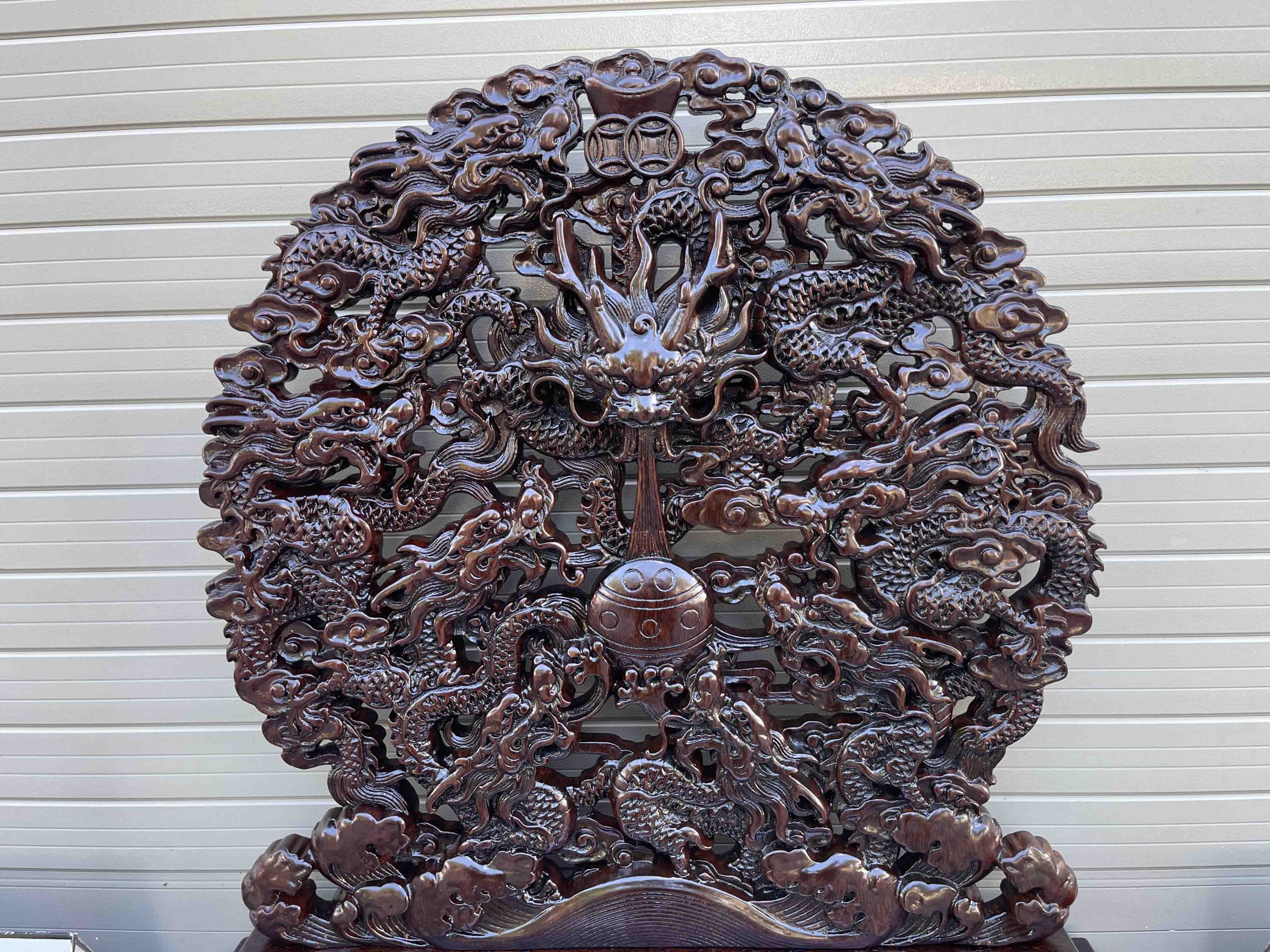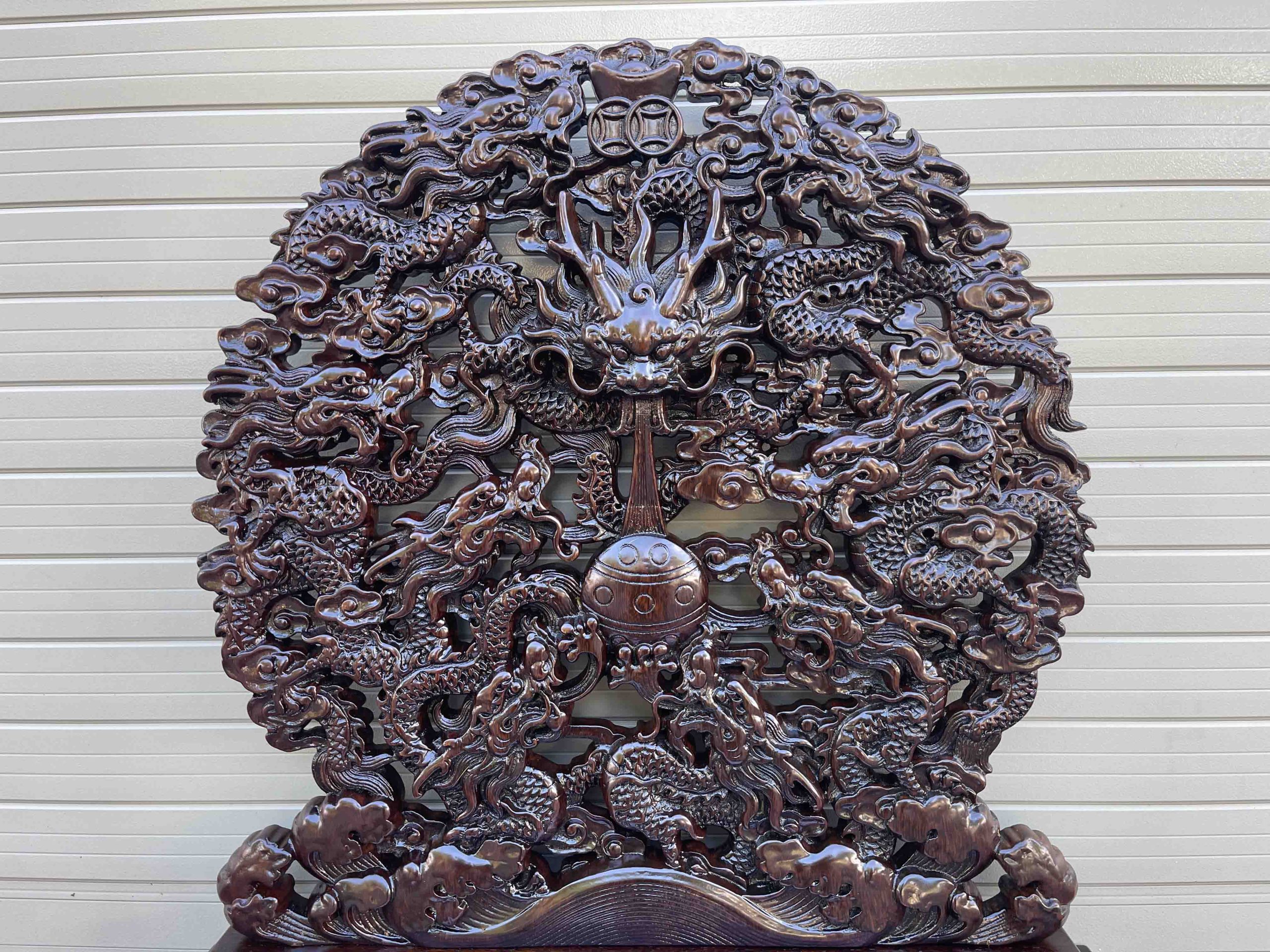 Tranh Cửu Long Tranh Châu Để Bàn được đục chạm tỉ mỉ và nổi bật