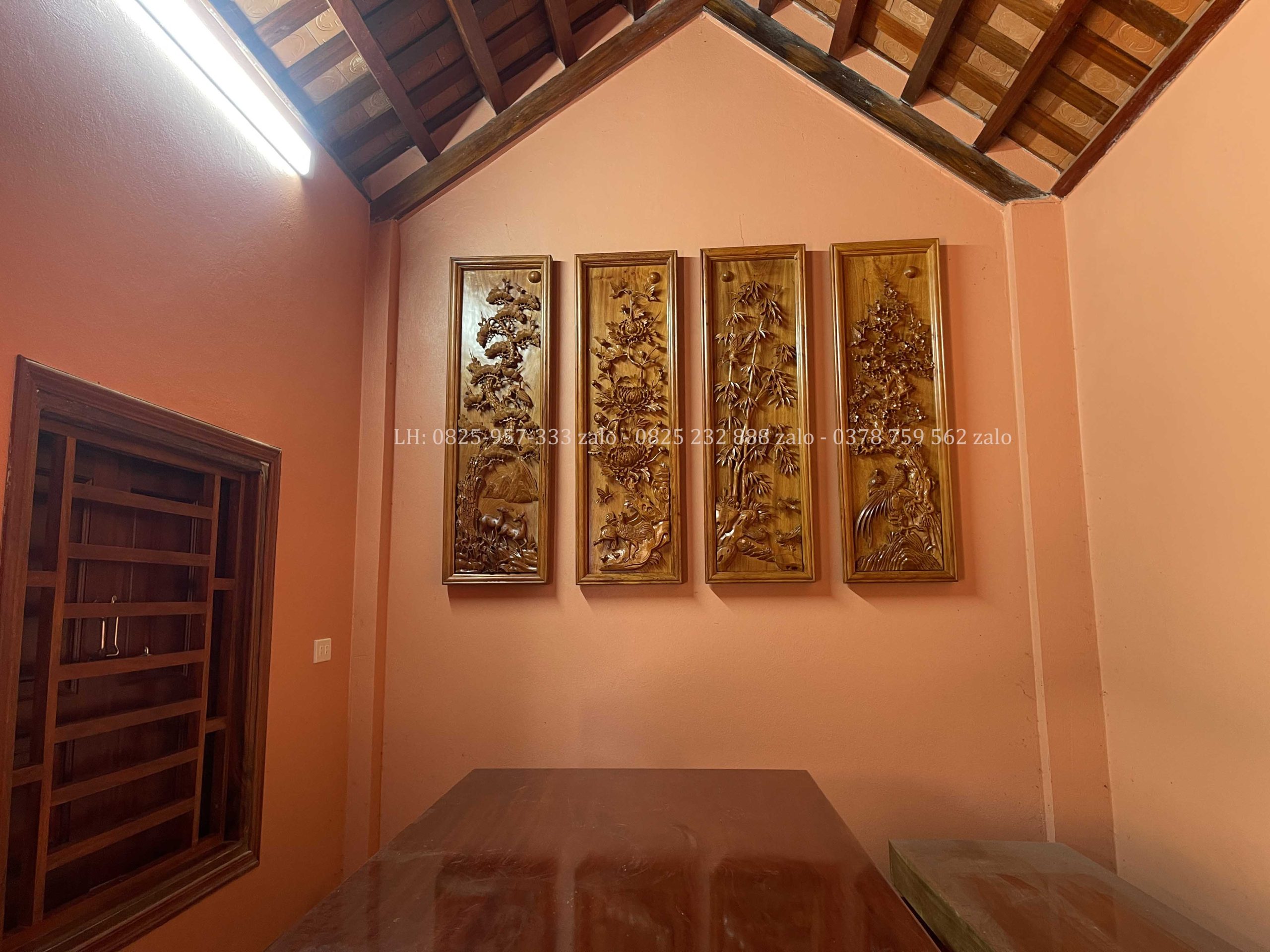 xin giới thiệu tới quý khách hàng mẫu Tranh Tứ Qúy Bốn Mùa Gỗ Hương Đá được làm trên chất liệu gỗ hương đá vân gỗ nổi bật, từng nét đục chạm kênh bong sắc nét mỗi mùa mang một ý nghĩa khác nhau từ bàn tay tài hoa người nghệ nhân. Sản phẩm đem lại cho không gian phòng khách, phòng trà, phòng làm việc rất nổi bật, ý nghĩa. Dưới đây là hình ảnh và thông tin chi tiết rõ nét