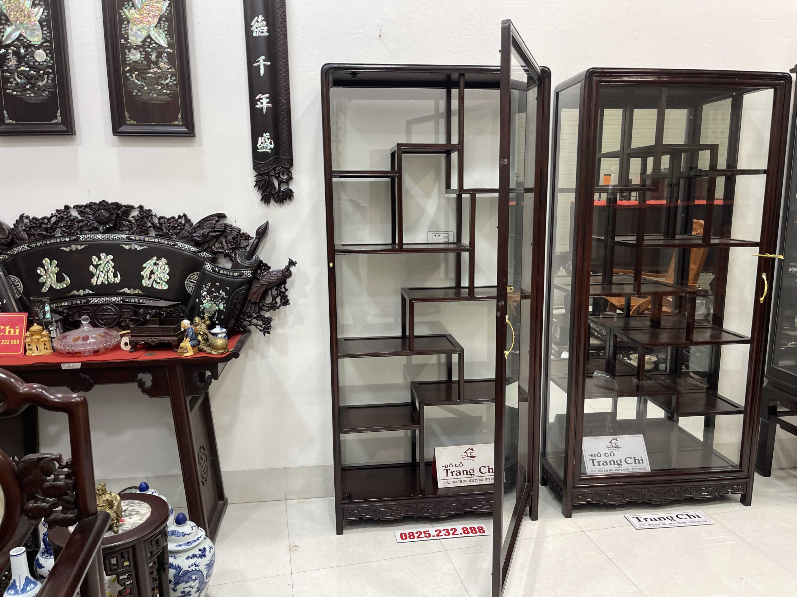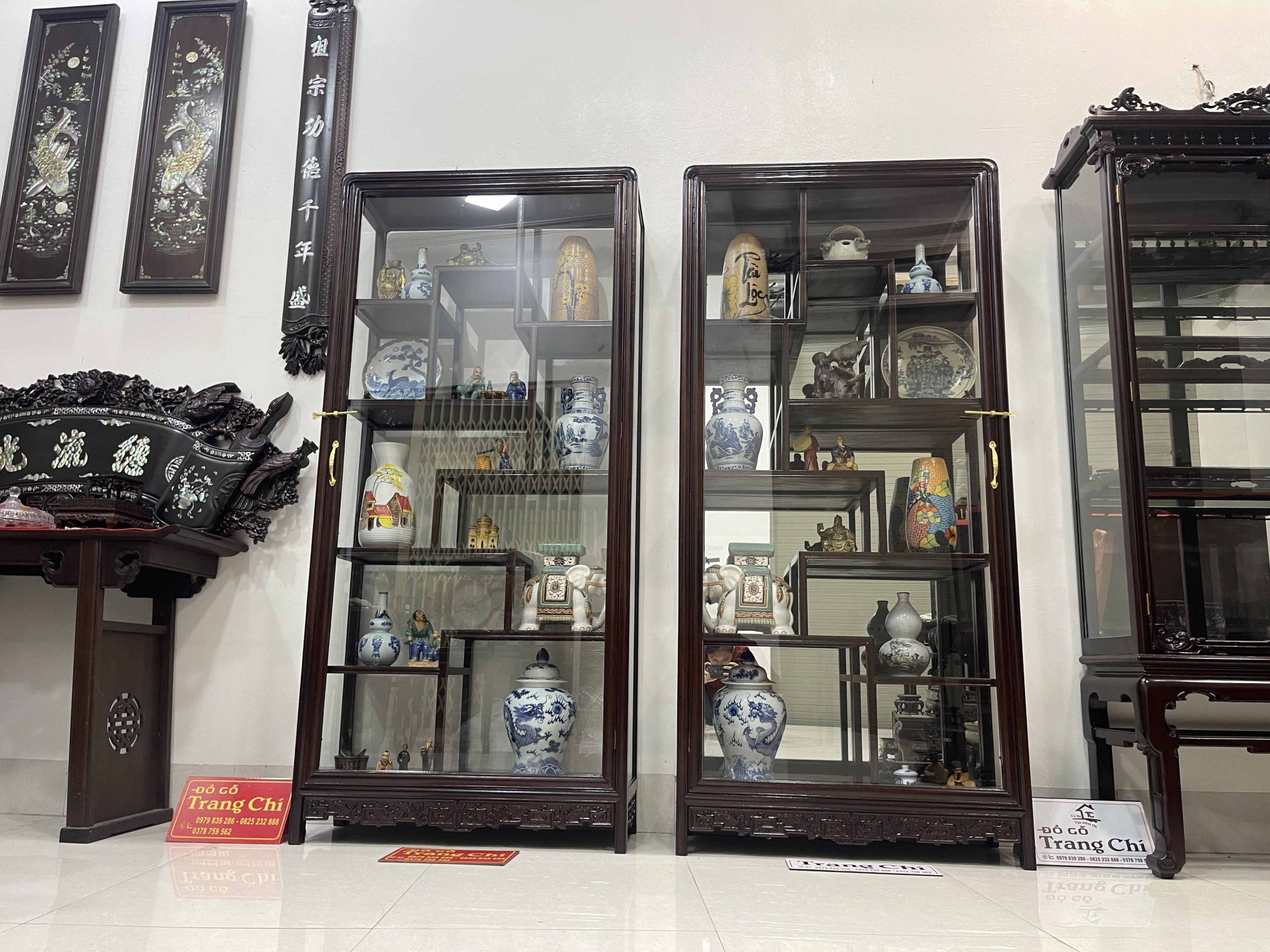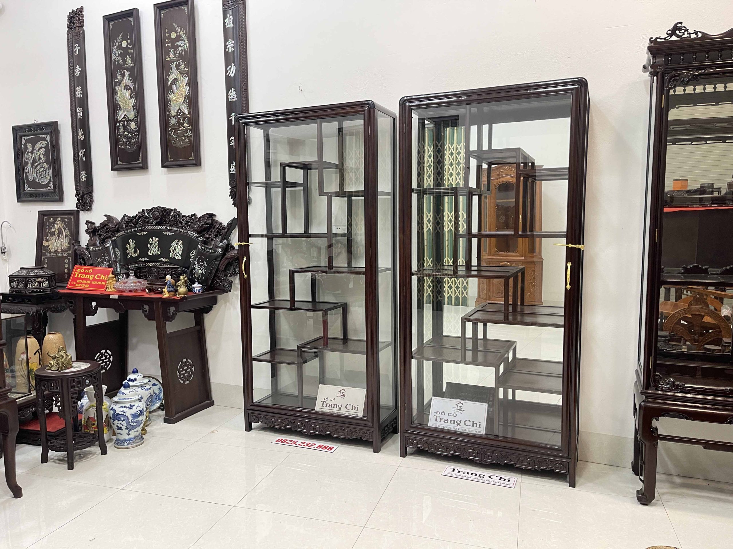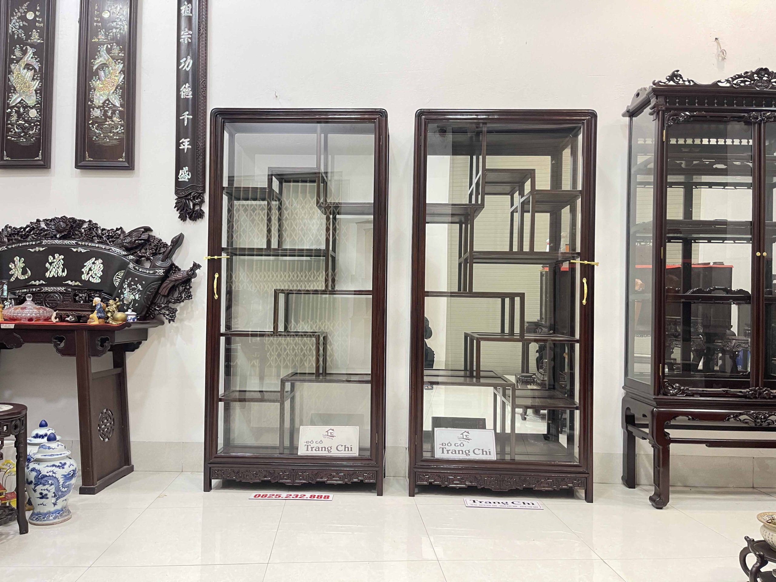 xin giới thiệu tới quý khách hàng Cặp Tủ Bày Đồ Gỗ Gụ Kính 4 Mặt được làm trên chất liệu gỗ gụ bền đẹp, mặt sàng gỗ. Đặc biệt cơ sở chúng em làm kính bao quanh nên khi quý vị trưng bày đồ sẽ rất nổi bật và ý nghĩa cung như sẽ tránh được bụi, và những món đồ sứ, đồ cổ khi trưng bày sẽ được ngăn lắp và nổi bật hơn. Dưới đây là là hình ảnh thông tin về sản phẩm