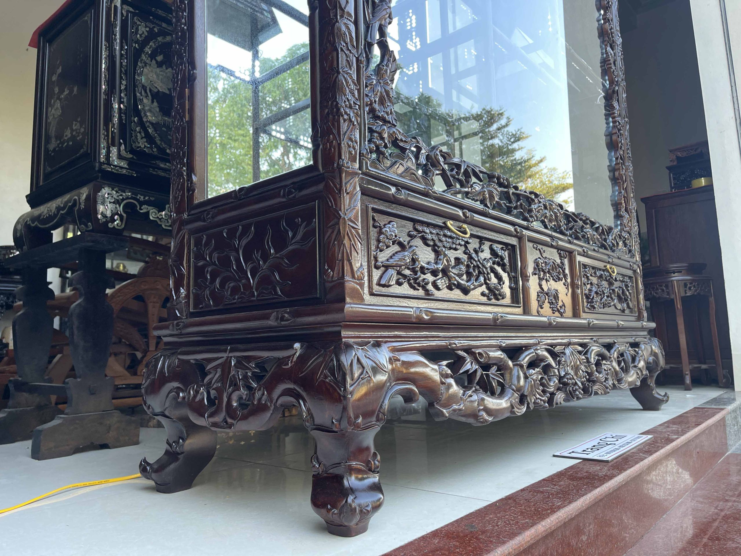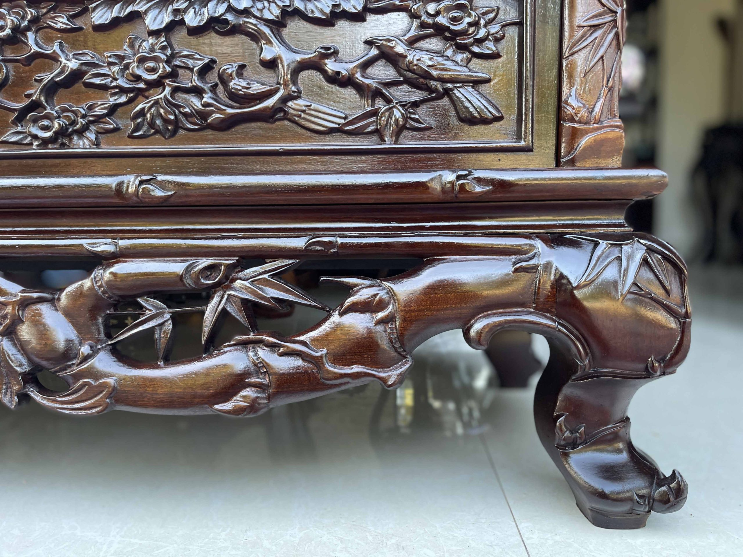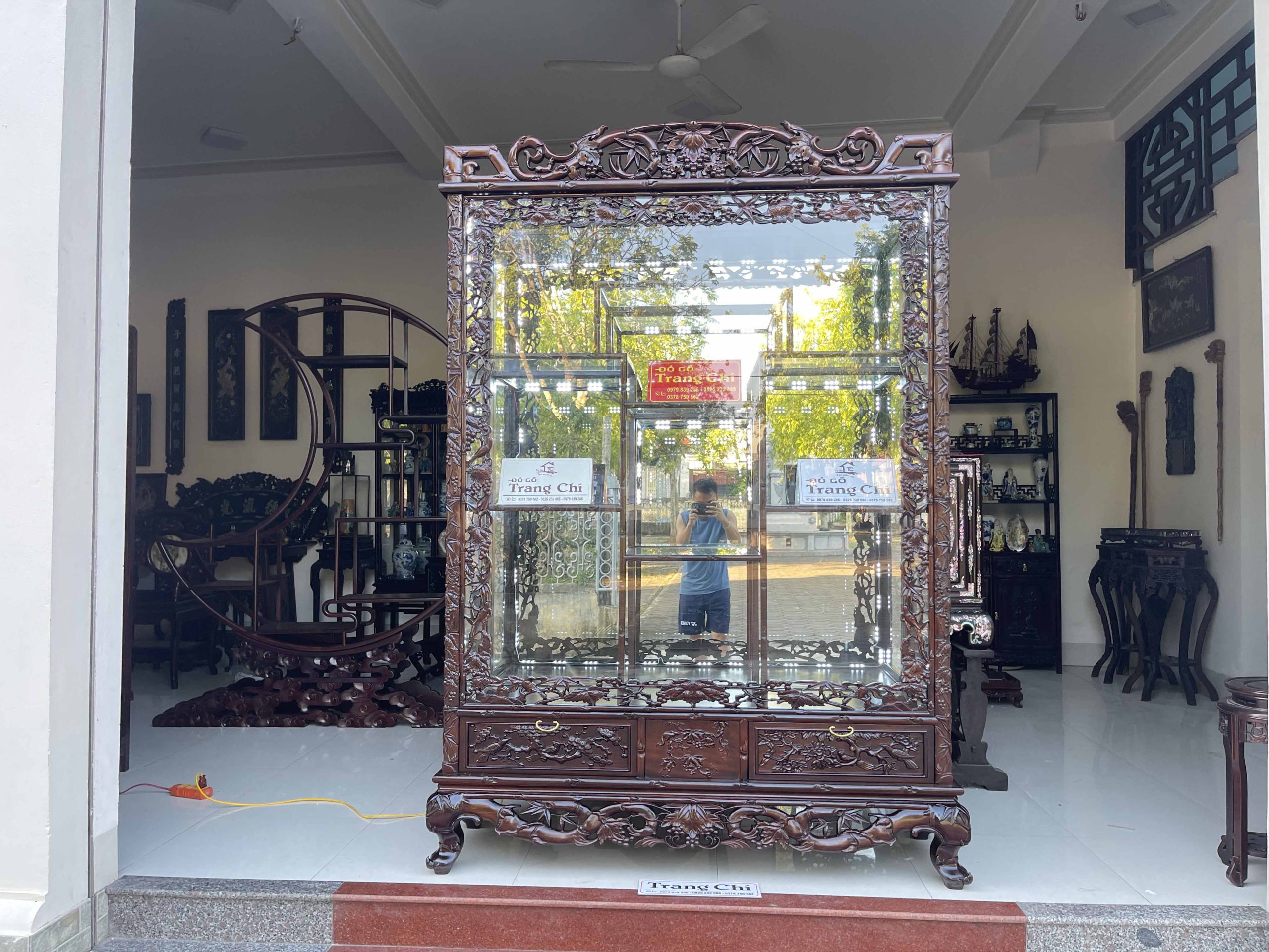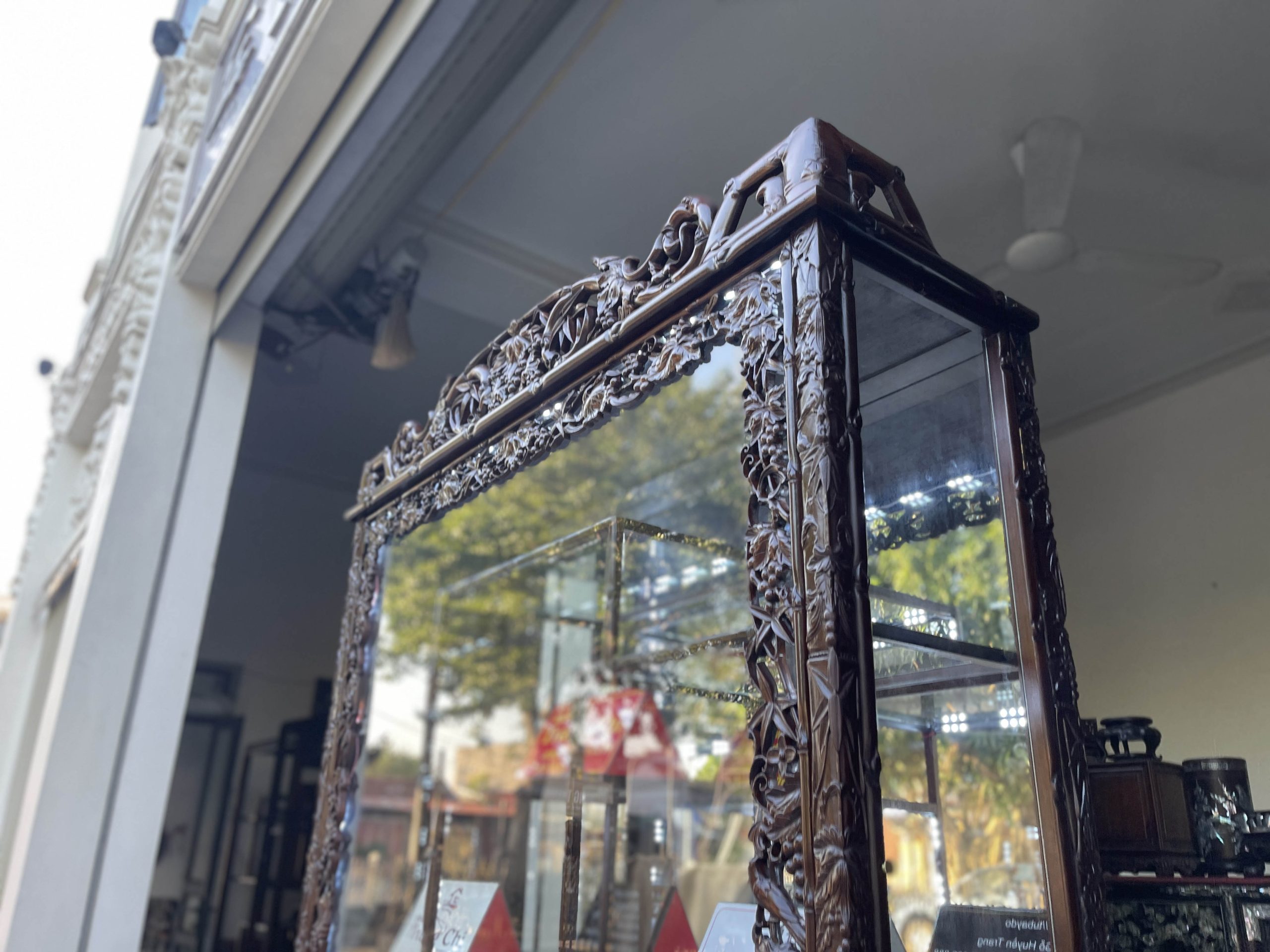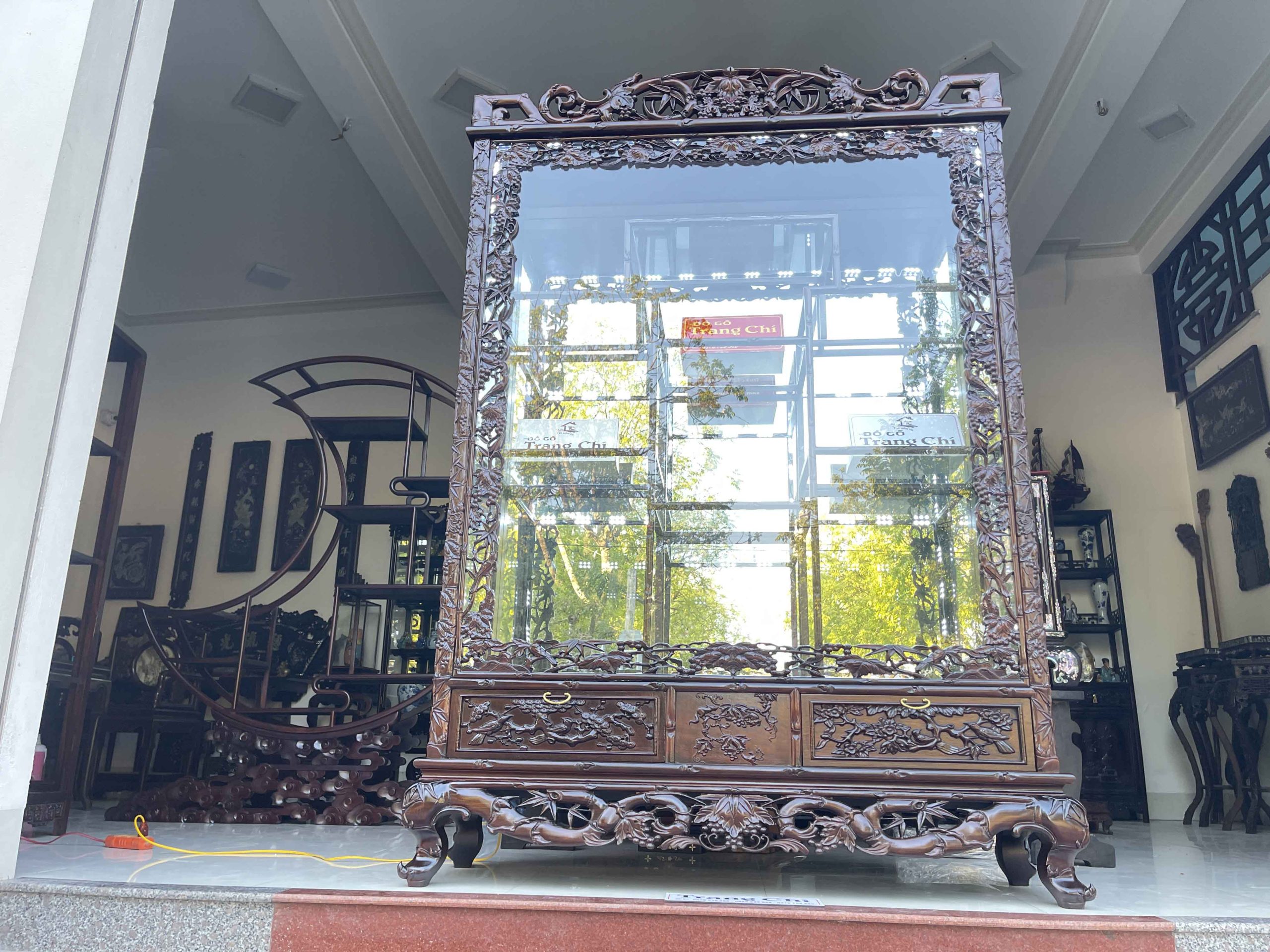 xin giới thiệu tới quý khách hàng Tủ Bày Đồ Trúc Cỡ Đại Có Kính được làm theo kích thước hàng đặt, mẫu tủ với chủ đề chạm trúc ba mặt, tủ thiết kế 2 thớt và có lắp điện theo yêu cầu. Sản phẩm được trên chất liệu gỗ gụ bền đẹp, màu sắc hoàn thiện nổi bật. Dưới đây là hình ảnh và thông tin chi tiết